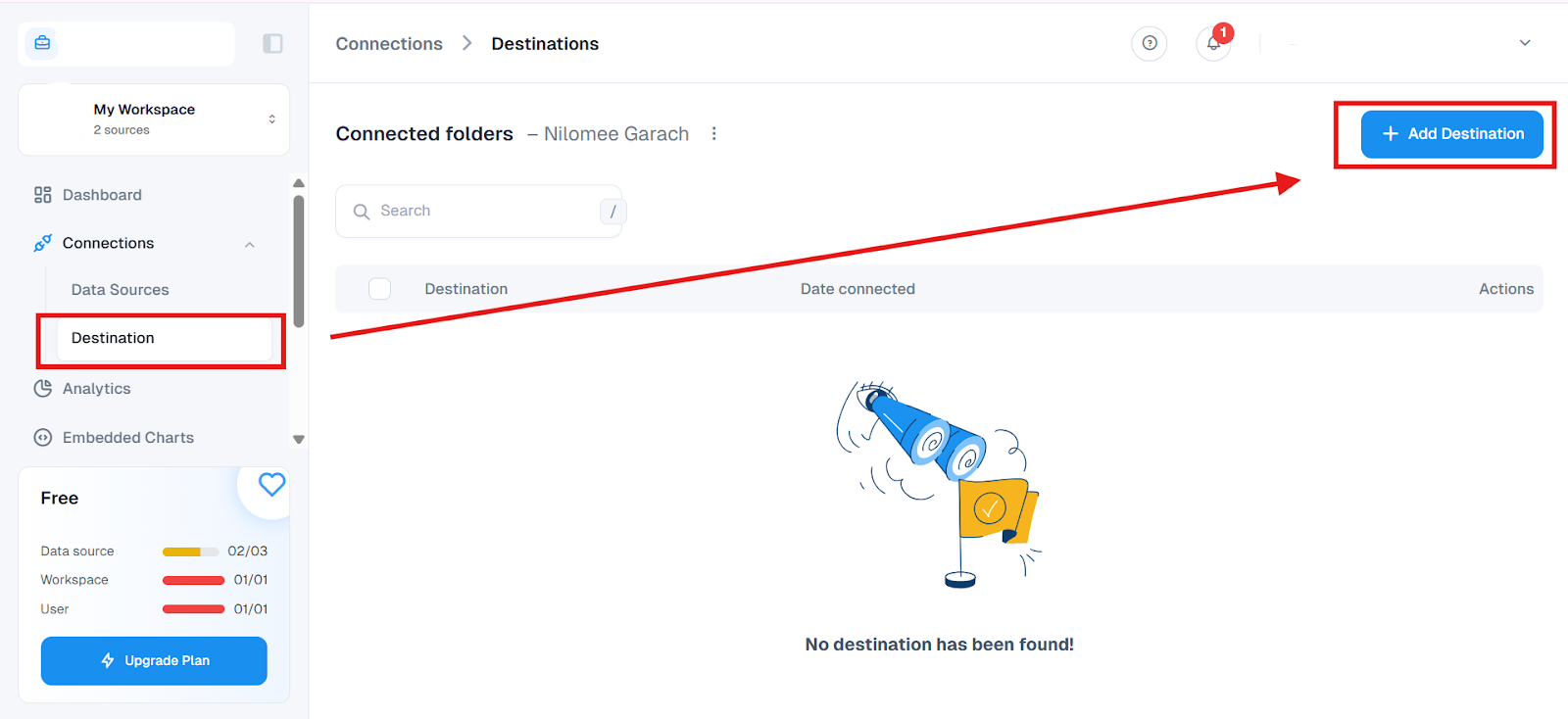 Under the same “Connections” dropdown, find the “Destination” option and select it.