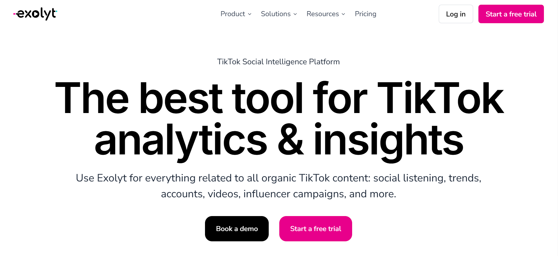 Exolyt is designed for TikTok and nothing else. It uses machine learning to give you sharp insights into what’s working and what’s coming next. From video length to the best time to post, it helps you get into the details. It’s also one of the most affordable advanced TikTok analytics platforms out there.Features: